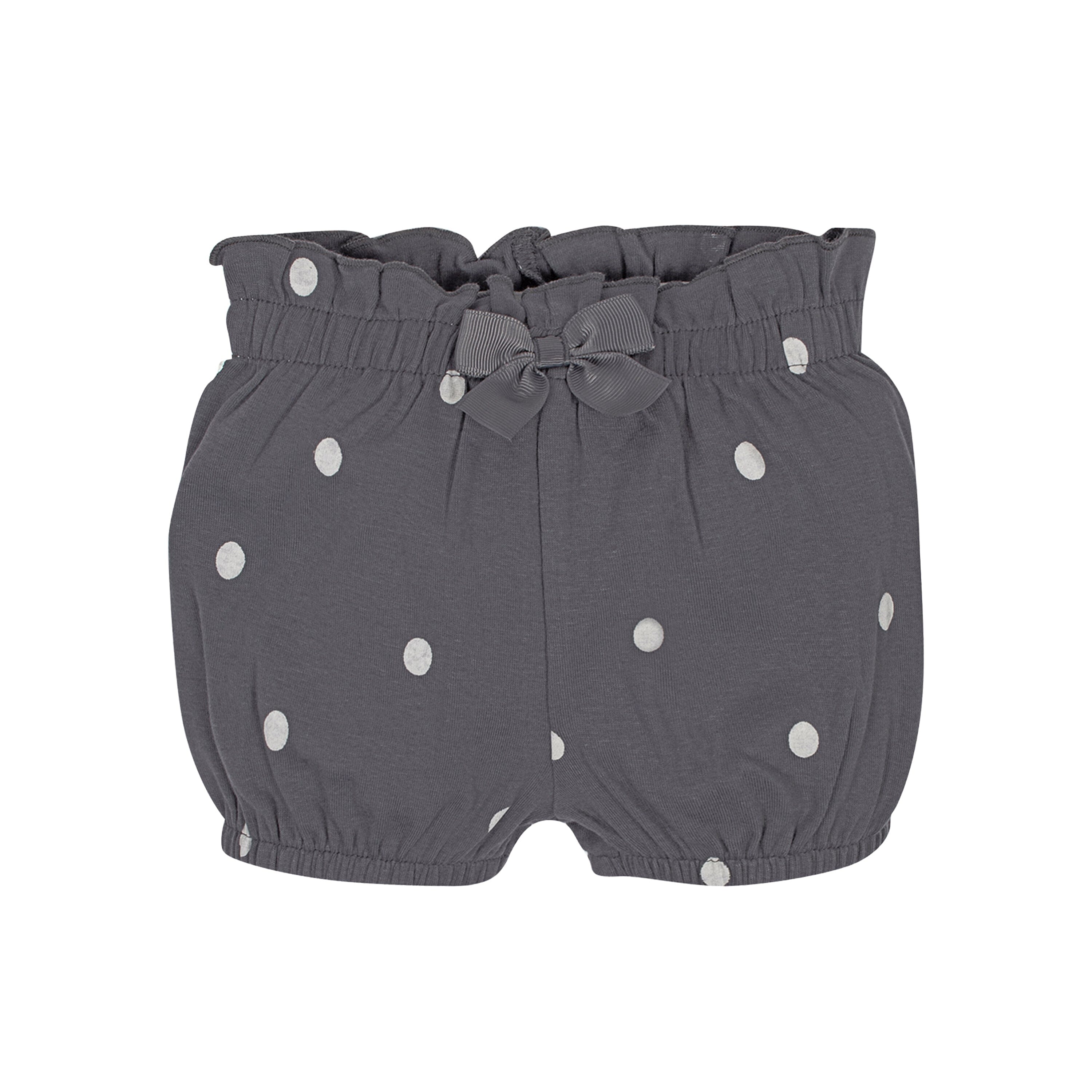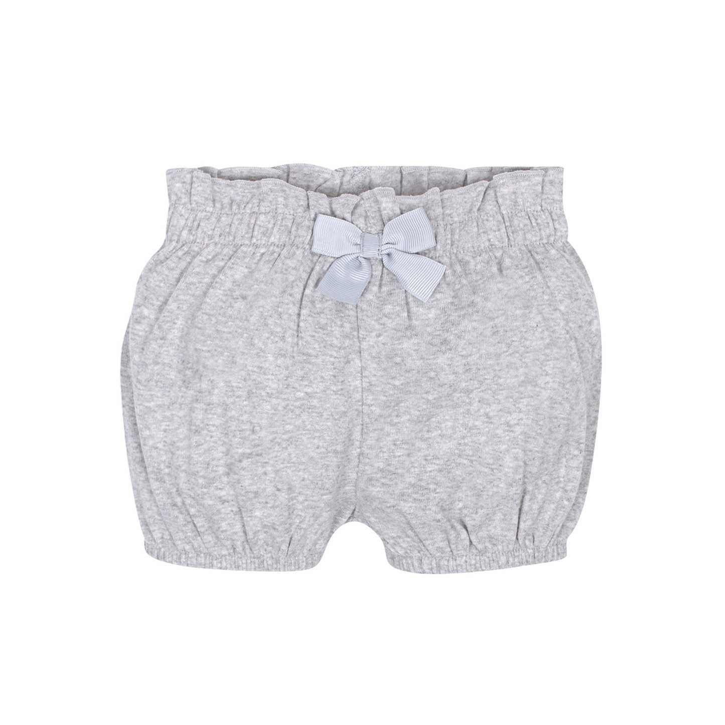 Our baby shorts are perfect to mix and match with their favorite tees, Onesies庐 bodysuits and accessories. Each pair is made with super soft cotton fabric blended with a touch of spandex. The shorts feature gentle elastic waistbands for quick and easy changes. Our essentials have been independently certified with STANDARD 100 by OEKO-TEX庐 so that you don鈥檛 have to worry about harmful substances in your baby鈥檚 wardrobe. This pack includes four pairs of gray baby girl shorts in solid, striped, polka dot, and floral prints.