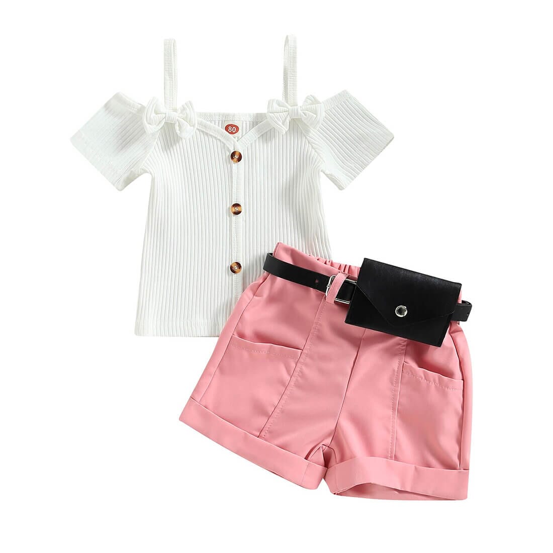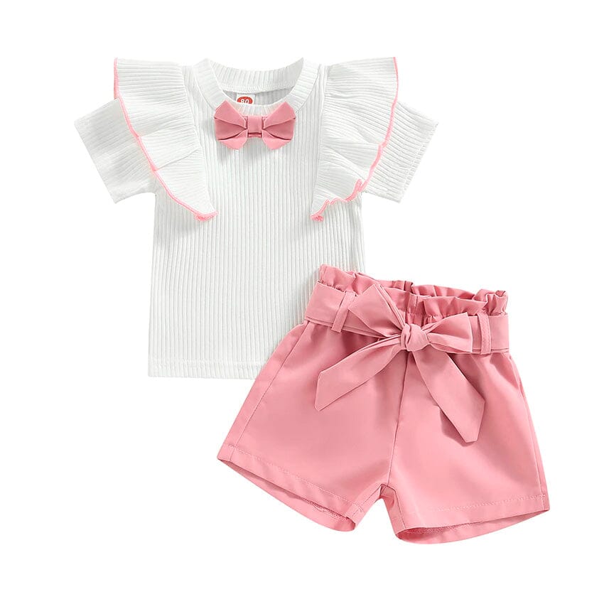 White Ribbed Pink Shorts Toddler Set
