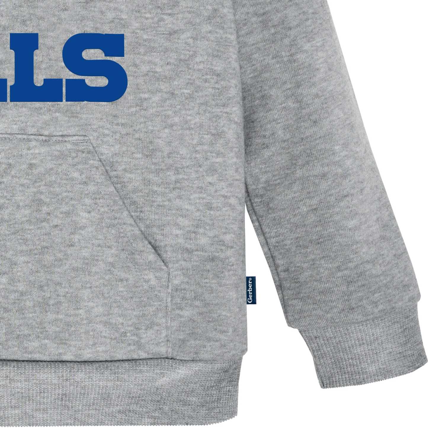 Even the smallest family members can get in the football spirit with our officially licensed Buffalo Bills Hoodie. This hoodie is made to keep your little one comfortable throughout the entirety of the game or while playing with friends. Featuring an applique team name and logo front and center, cuffed sleeves and banded bottom, this is the perfect hoodie for infants and toddlers, as it may be worn comfortably all on its own or layered with a shirt for extra warmth. The hoodie also has a functional front pocket to keep those hands warm when it's a little chilly outside. This NFL by Gerber Bills team hoodie is machine washable to take care of any game-time spills with the utmost ease and convenience.