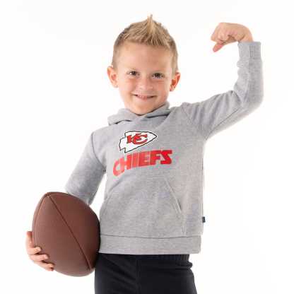 Even the smallest family members can get in the football spirit with our officially licensed Kansas City Chiefs Hoodie. This hoodie is made to keep your little one comfortable throughout the entirety of the game or while playing with friends. Featuring an applique team name and logo front and center, cuffed sleeves and banded bottom, this is the perfect hoodie for infants and toddlers, as it may be worn comfortably all on its own or layered with a shirt for extra warmth. The hoodie also has a functional front pocket to keep those hands warm when it's a little chilly outside. This NFL by Gerber Chiefs team hoodie is machine washable to take care of any game-time spills with the utmost ease and convenience.