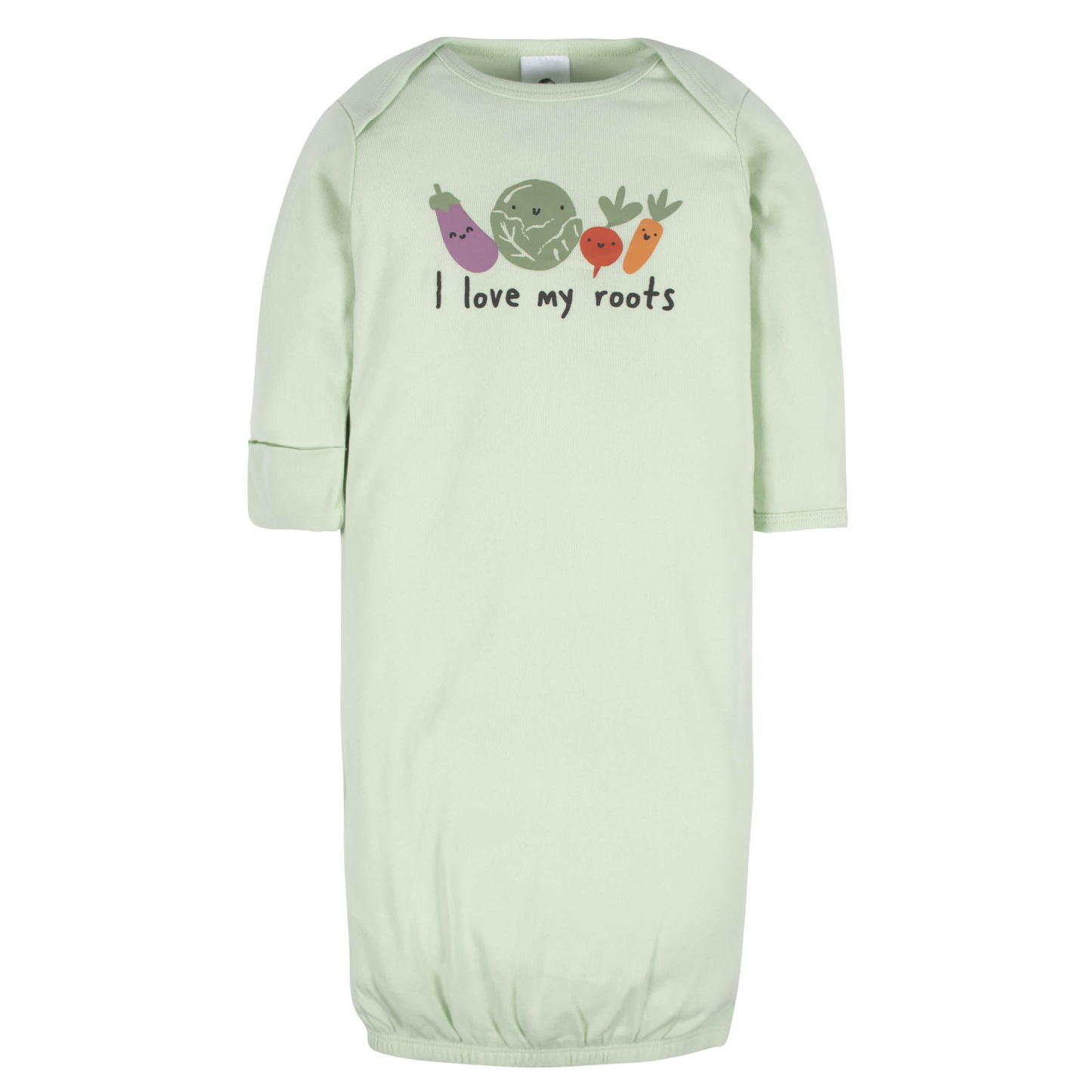Our gowns are a must-have for newborns! Each one is designed for super quick diaper changes and may be worn during the day or the night. We use STANDARD 100 by OEKO-TEX庐 certification on products tested in an independent laboratory against a list of more than 400 harmful substances, including PFAS. This pack includes four gowns with veggie themed art.