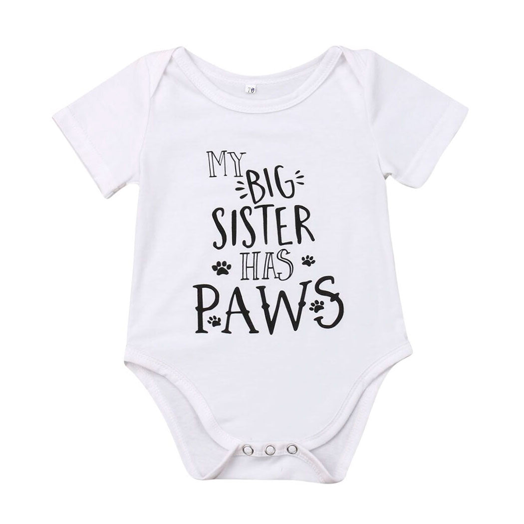 This adorable unisex baby bodysuit features a playful message that reads "My big brother/sister has paws". Perfect for families who have a furry friend at home, this short sleeve bodysuit is both cute and comfortable. The soft fabric ensures a cozy fit for your little one, while the snaps at the bottom make for easy diaper changes. Get your little one dressed in style with this charming paws bodysuit.