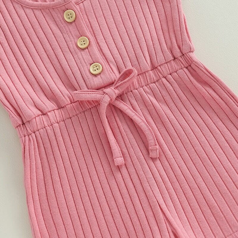 Dress your little fashionista in this adorable sleeveless solid ribbed romper, featuring a trendy and comfortable design that will keep her stylish and cool all day long. The soft ribbed fabric ensures maximum comfort, while the sleeveless design allows for easy movement and breathability during hot summer days.