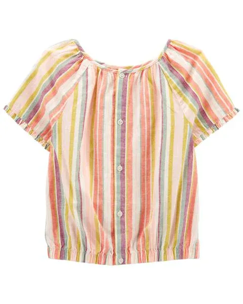 Kid Striped Linen Top with Striped Linen Skort