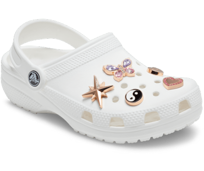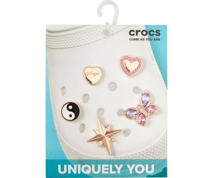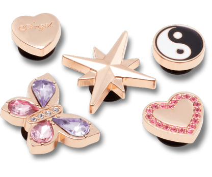 Pop some personality into your shoes with these Pink and Gold 5 Pack Jibbitz™ charms. They’re the perfect addition to your favorite pairs of clogs, slides, and more.