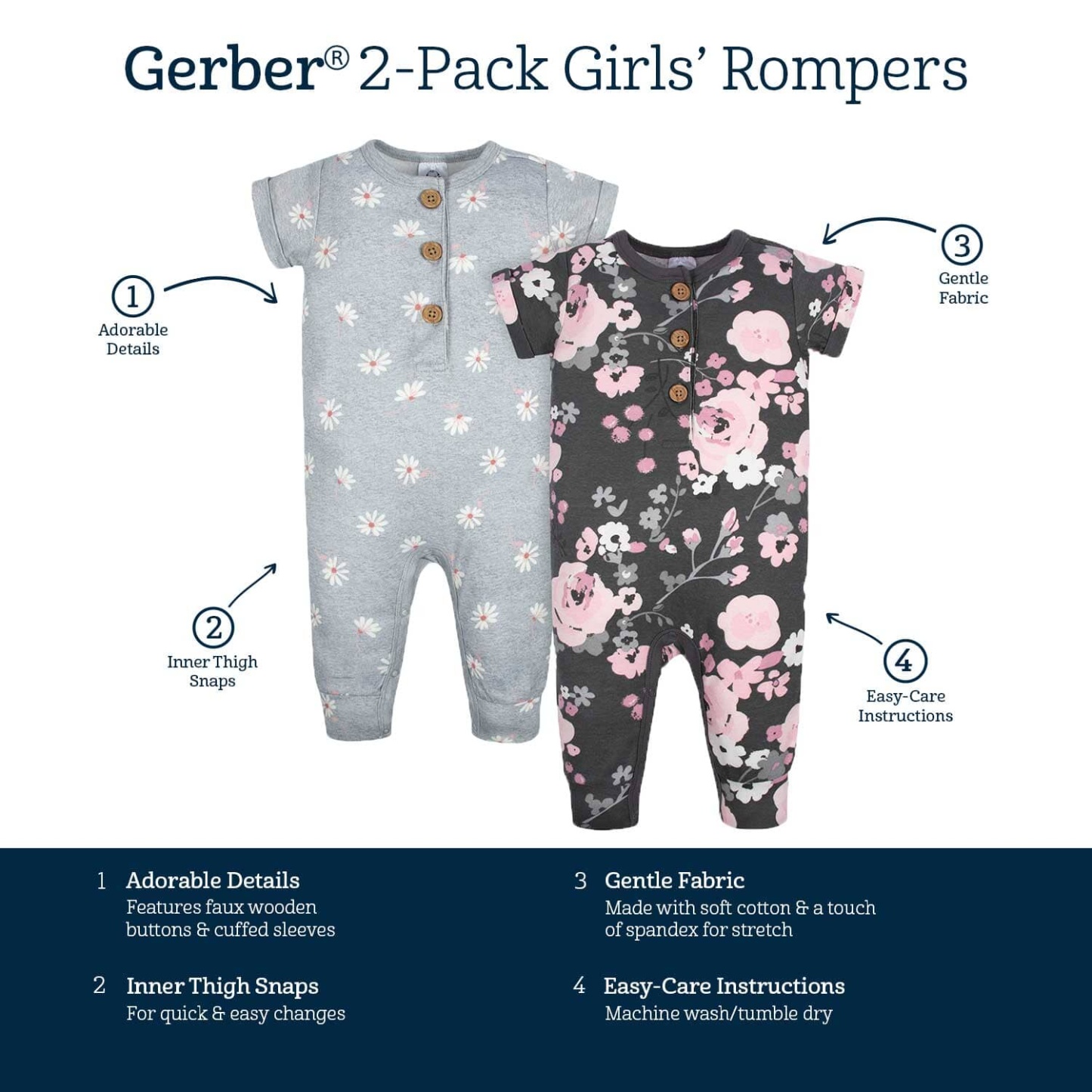 2-Pack Baby Girls Floral & Daisies Short Sleeve Rompers