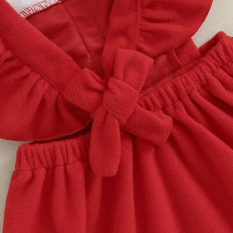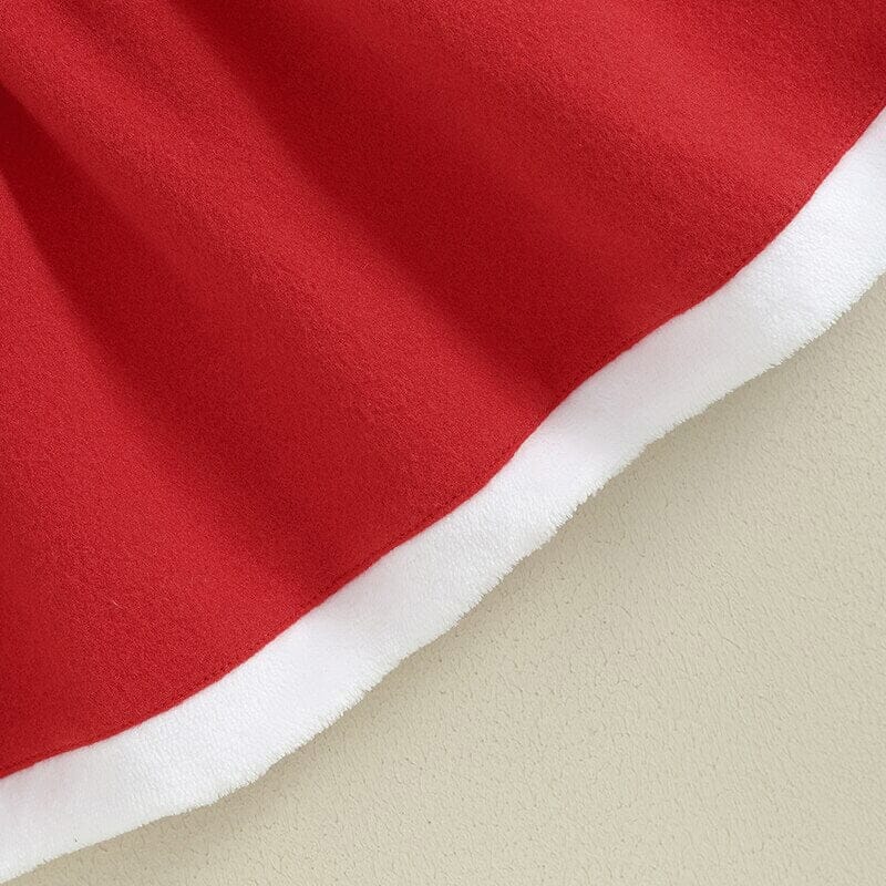 This dress is designed to capture the magic of the Christmas season with its exquisite details. The ruffled sleeves and lace accents add a touch of elegance, while the belt detail cinches the waist for a sweet and stylish look. The dress is perfect for holiday parties, family gatherings, and special occasions during this joyous time of year.