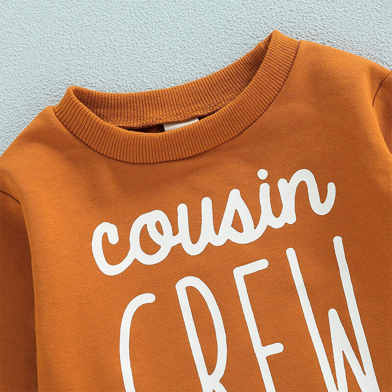 The unisex baby sweatshirt is perfect for your little one, featuring an adorable lettering of "Cousin Crew" on the front. Made from high-quality materials, this cozy and soft sweatshirt is perfect for cooler days and nights. Give your little one the gift of comfort and style with this adorable baby sweatshirt.