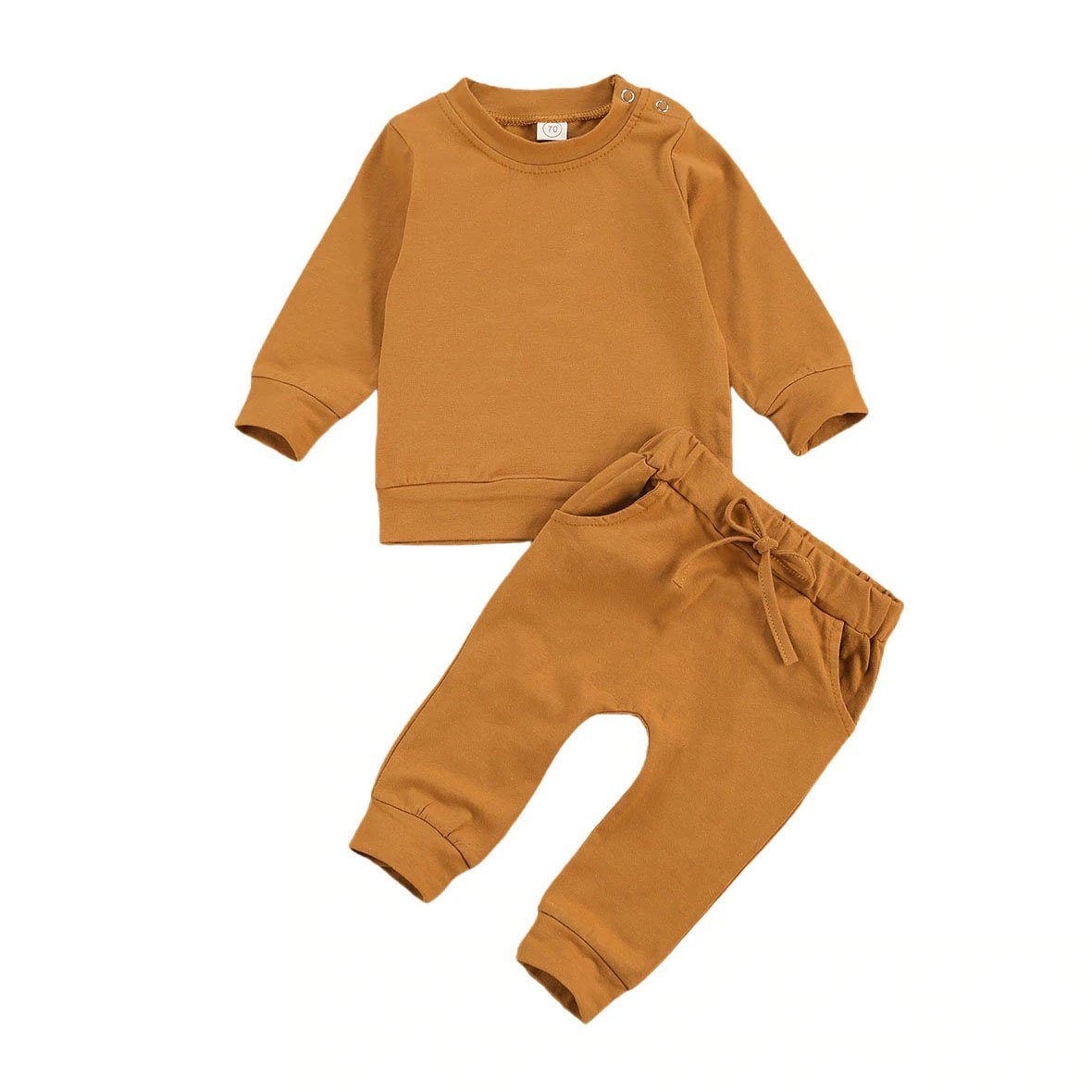 This adorable baby boy outfit features a solid sweatshirt and matching pants that are comfortable, stylish, and perfect for any occasion. The sweatshirt is made from soft and cozy material that will keep your little one warm and comfortable, while the matching pants feature an elastic waistband that makes them easy to put on and take off. The solid color of both the sweatshirt and pants makes them easy to mix and match with other items in your baby's wardrobe.
