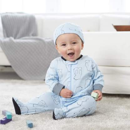He’ll be ready to relax with this 2-Pack of Sleep ‘n Plays! The Sleep ‘n Plays are cute, comfortable, and machine washable. Made with soft cotton, they’re perfect to wear during the day as well as to sleep in at night. They feature a snap atop the zipper to prevent irritation and are footed for warmth.