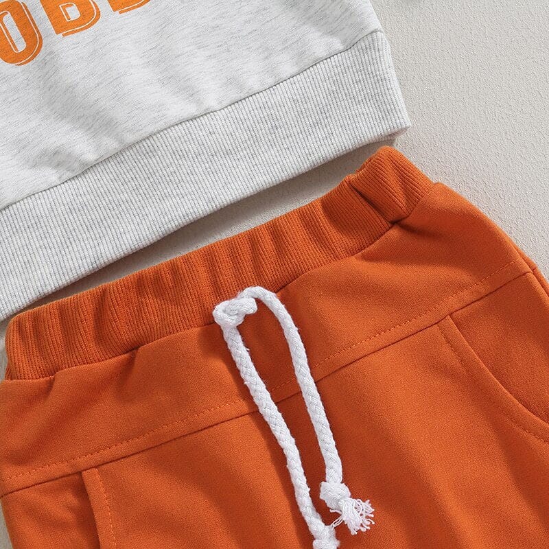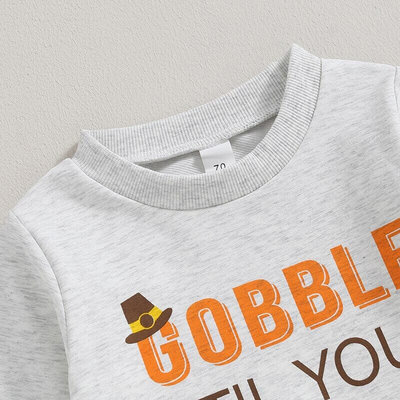This ensemble features a cozy sweatshirt adorned with a heartwarming and humorous lettering, adding a touch of playfulness to the holiday celebration. Paired with solid pants that provide comfort and style, this set ensures your little one is ready to join in on the festive fun. From family feasts to cherished moments, this ensemble is the perfect choice for your baby boy's Thanksgiving attire, combining comfort and cuteness in one delightful package.