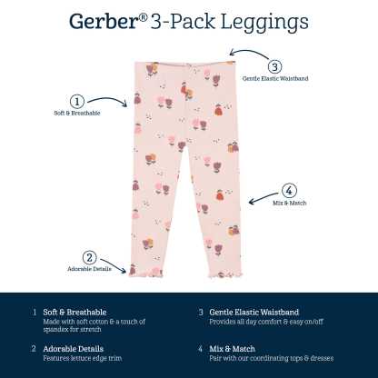3-Pack Infant & Toddler Girls Burgundy Floral Leggings