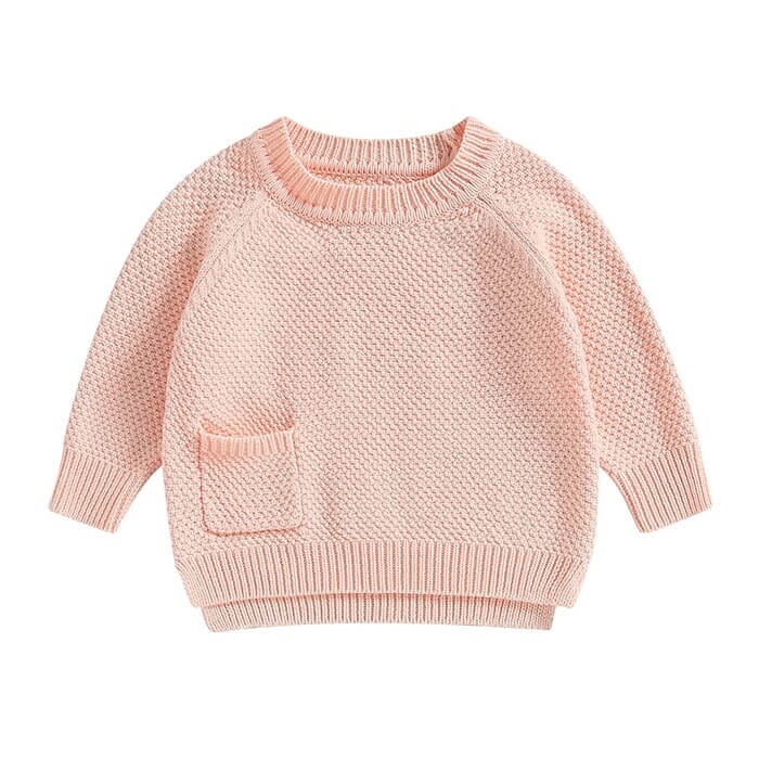 Crafted with care, this sweater features a soft and cozy knitted fabric that will keep your baby snug during cooler days. The standout detail is the charming pocket on the front, adding an adorable touch to the design. Versatile and unisex, this sweater is perfect for any occasion – from casual outings to special gatherings.